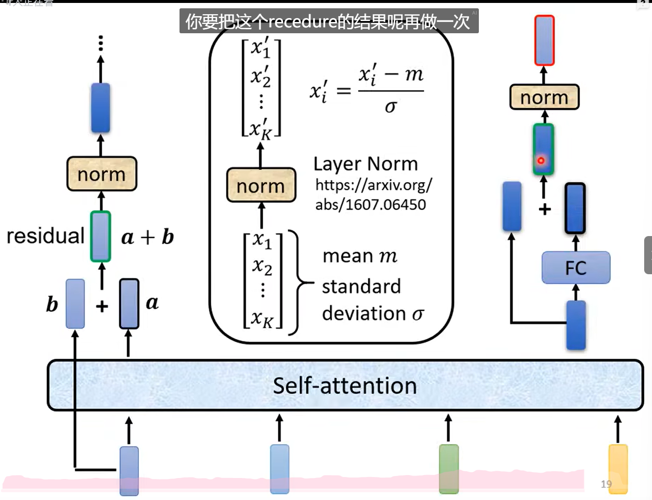 使用层归一化Layer Norm。(计算mean、std)