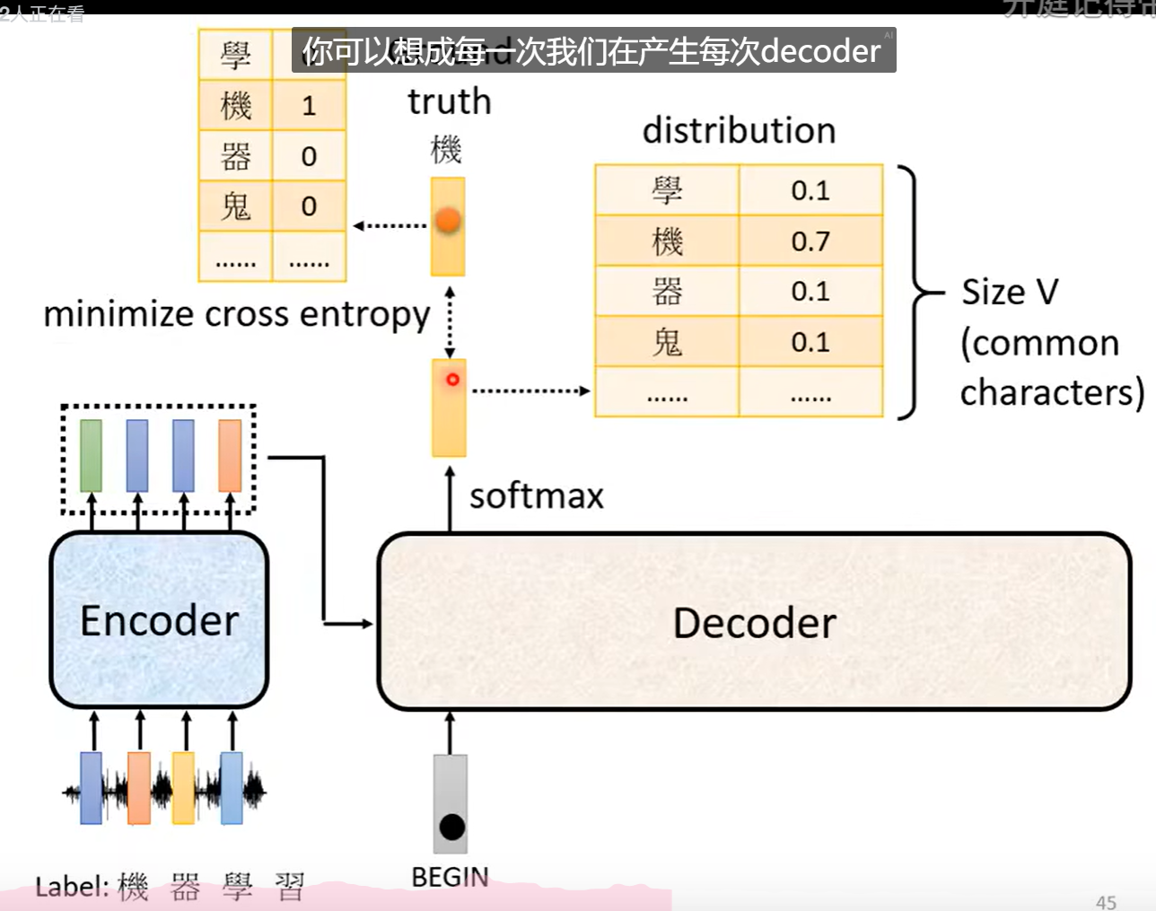 再训练的时候会给予正确的答案。这样的操作叫做强制教学Teacher Forcing。