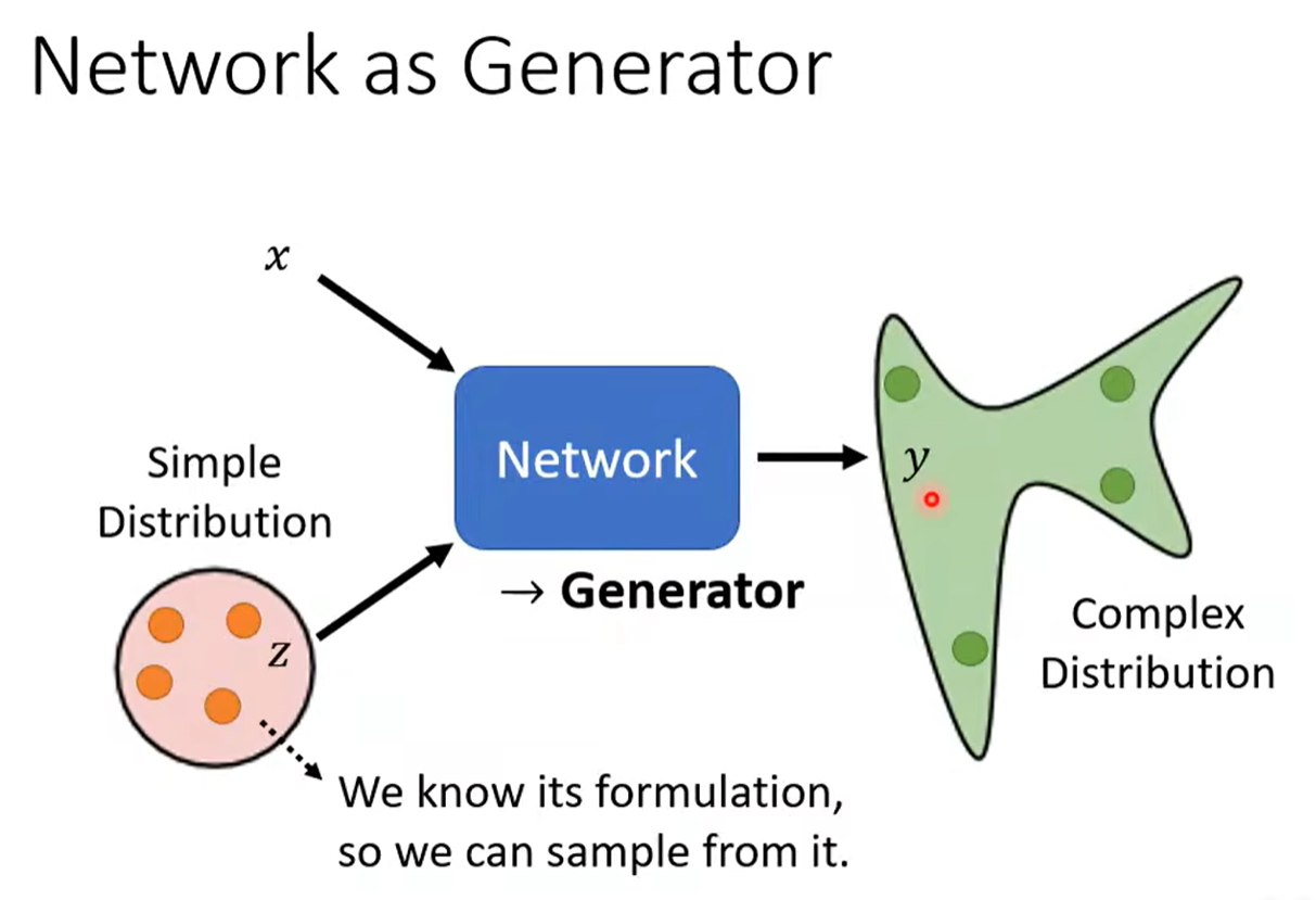 依据给定简单分布(可以是正态分布)的不同得到多种不同的输出。