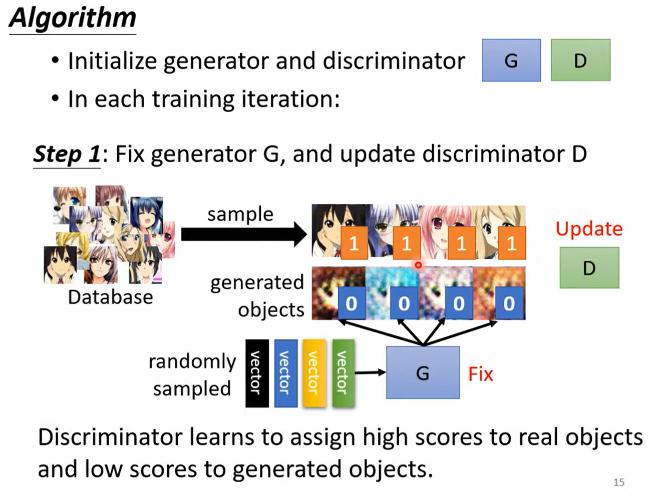 3.2 将输出给予D,由此得到评分。(我们希望越大越好)