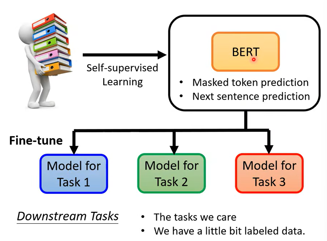 半监督学习说的是,我们BERT的训练是(自监督学习)无监督的学习,而做下游任务的时候是监督学习。